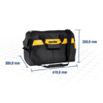 Confeccionada em lona reforçada com abertura total, reforço metálico na parte superior, alça fixa e alça auxiliar em nylon,possui 4 pés/apoios plásticos, ziper extra reforçado e 36 divisões/bolsos sendo 10 na parte interna e 26 na parte externa.