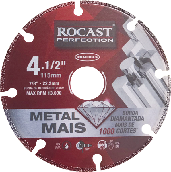 O Disco de Corte Diamantado Rocast 4.1/2” é indicado para cortes precisos em materiais de alta resistência. Produzido com tecnologia diamantada, oferece bom desempenho, estabilidade e durabilidade em aplicações profissionais, sendo compatível com esmerilhadeiras angulares.