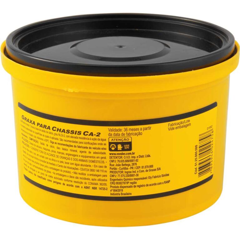 Graxa à base de cálcio indicada para lubrificação de chassi, pinos, articulações e outras partes automotivas ou agrícolas submetidas a atrito leve e baixa rotação.
