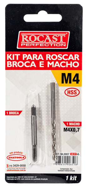 O Kit Macho e Broca Rocast é ideal para quem busca precisão, praticidade e qualidade profissional no processo de furação e roscamento. Cada kit já vem com macho e broca na medida correta, garantindo roscas limpas, alinhadas e com excelente acabamento.