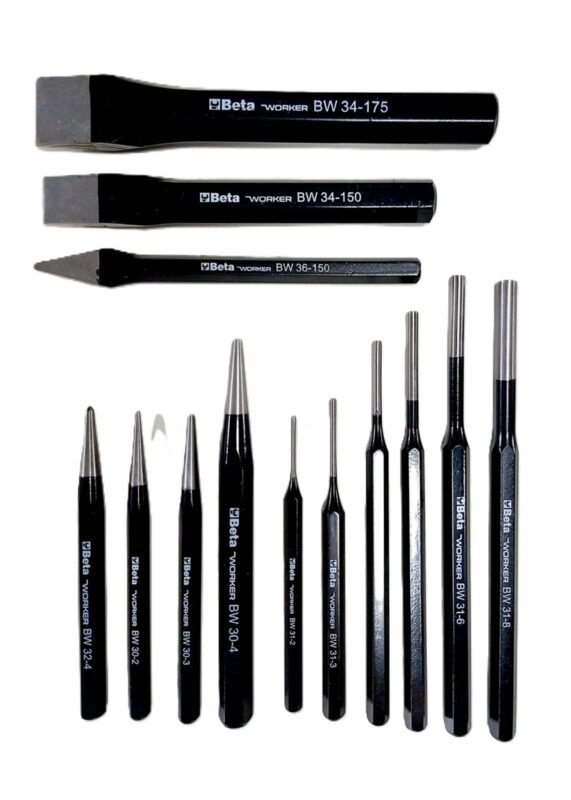 Kit Completo de Ferramentas Beta – Saca Pinos, Talhadeiras e Punção de Centro