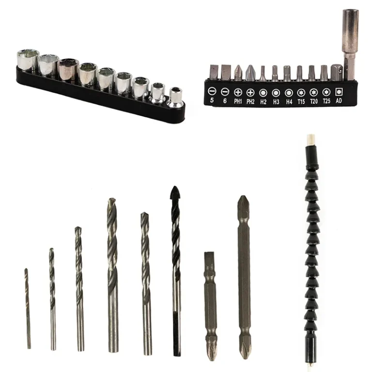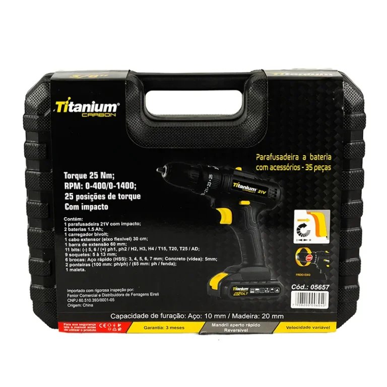 – 6 brocas: Aço rápido (HSS): 3, 4, 5, 6, 7 mm; Concreto (vídea): 5mm;
